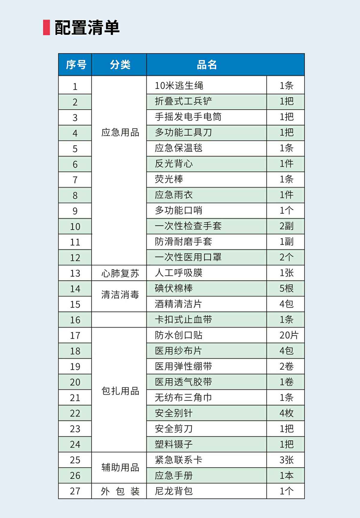 合肥弘正新能源汽车销售有限公司防灾应急包,适合突发灾害事故时恶劣环境下使用,配置全面、科学,满足从日常保健到灾难自救逃生的全面需求。